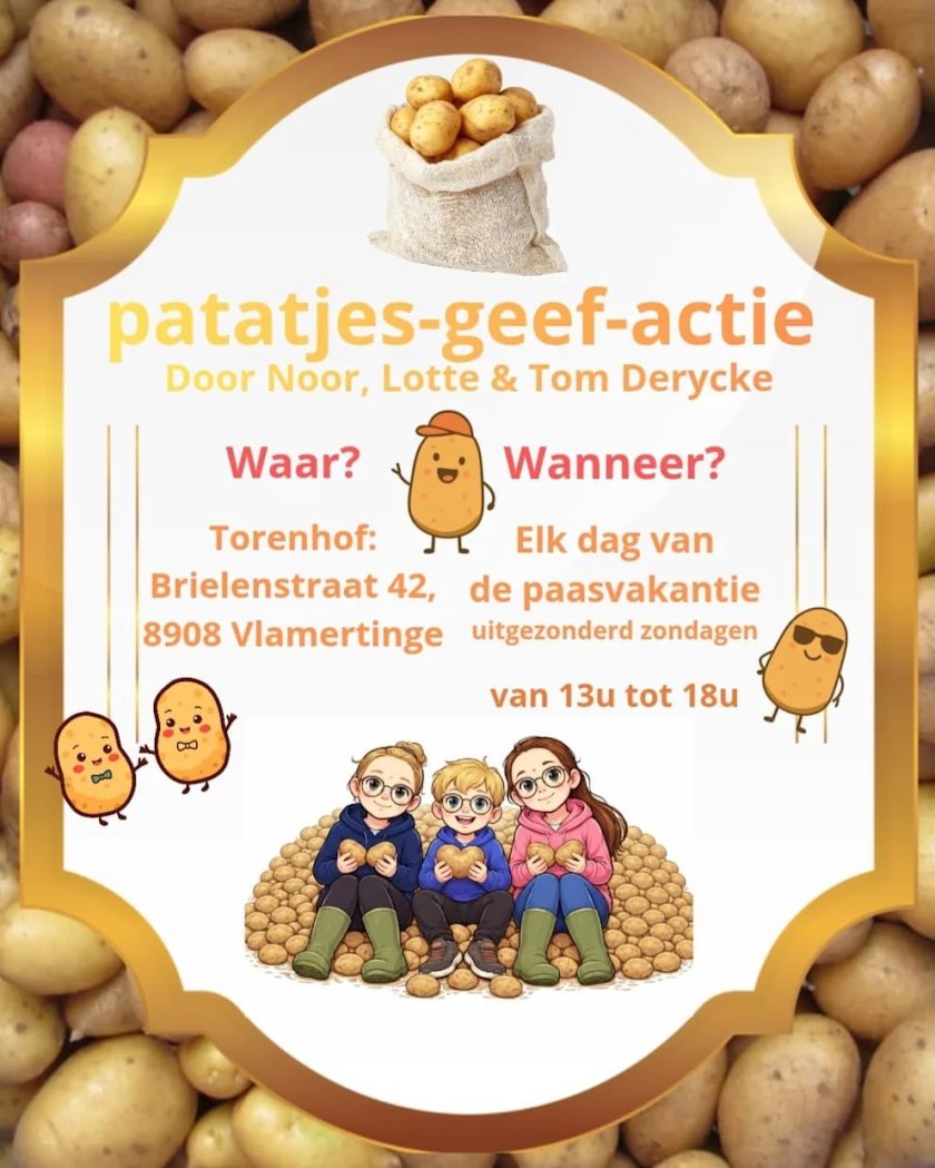 След това децата – Нур, Лоте и Том предложиха да раздадат картофите и дори направиха листовки: „Сърдечно каним всички да вземат малко безплатно.“ Около 20 души се появиха в първия ден. Кампанията ще продължи до 18 април. Досега са раздали 1 тон от общо 120.
