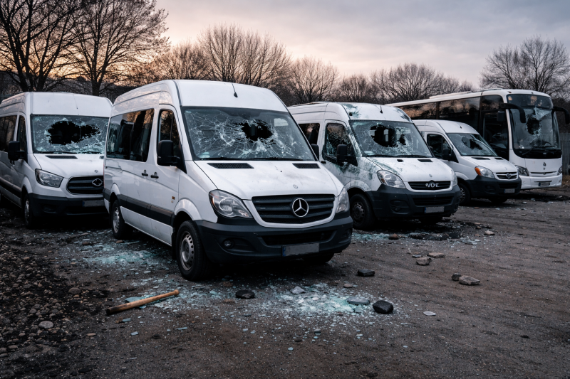 Полицейски служители са установили, че неизвестният извършител е навлязъл в неохраняем паркинг в града и с помощта на твърд предмет е потрошил пет паркирани автобуса. Засегнатите превозни средства включват марки като „Мерцедес“, „Спринтер“, „Форд Транзит“, „Ивеко Мару 2“ и „Рено Маскот“. Автобусите са собственост на берковска фирма за пътнически транспорт.